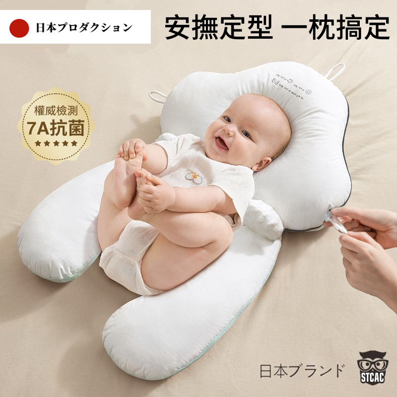 輕鬆睡出漂亮小圓頭!【限時特賣,買1送1】日本ブランド嬰兒安撫定型枕,0-6個月是調整頭型關鍵期!透氣防驚跳、可調節設計,幫助糾正偏頭
