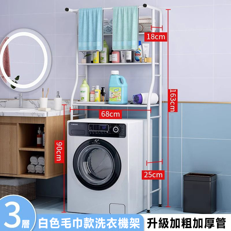 25分鐘前浴室收納必備!馬桶/洗衣機專用置物架,完美利用每一寸空間,整潔又實用! - 【白色】3層洗衣機置物架