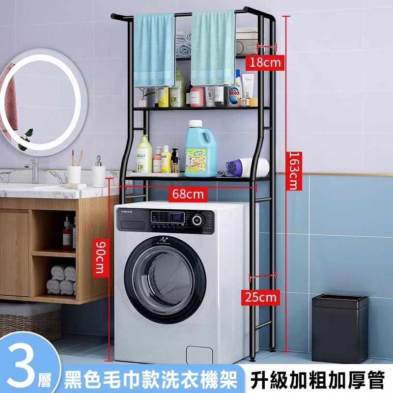 4分鐘前浴室收納必備!馬桶/洗衣機專用置物架,完美利用每一寸空間,整潔又實用! - 【黑色】3層洗衣機置物架