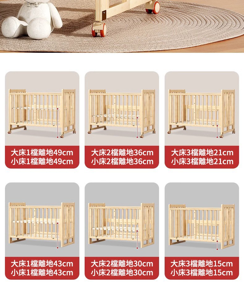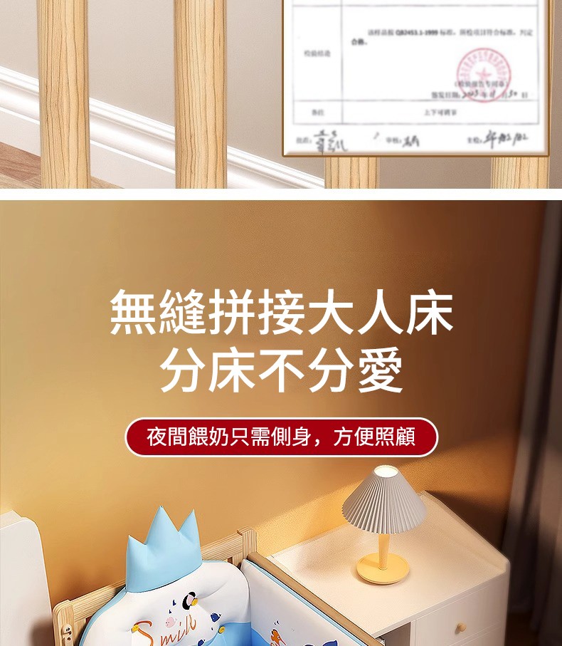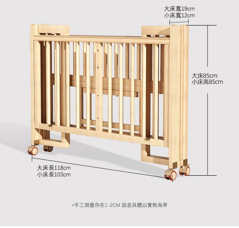 11分鐘前陪伴寶寶成長,永不閒置【嬰兒床-->遊戲床-->書桌】日本超火の可折疊嬰兒床,實木無漆更安心,可拼接大床+滑輪移動,多功能設計陪寶寶成長! - 【118*68*85cm】折疊大床+五件套+棕墊+蚊帳