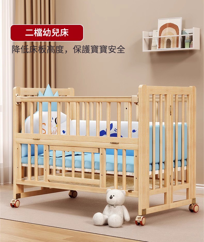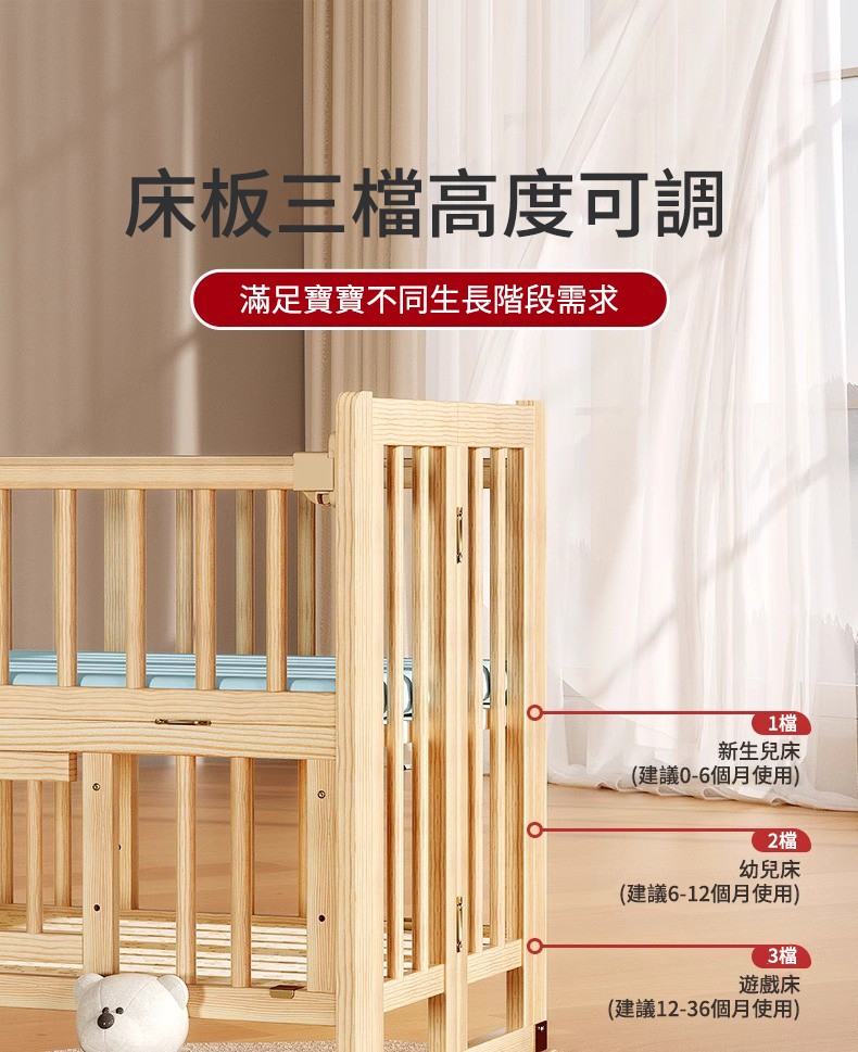 4分鐘前陪伴寶寶成長,永不閒置【嬰兒床-->遊戲床-->書桌】日本超火の可折疊嬰兒床,實木無漆更安心,可拼接大床+滑輪移動,多功能設計陪寶寶成長! - 【118*68*85cm】折疊大床+五件套+蚊帳