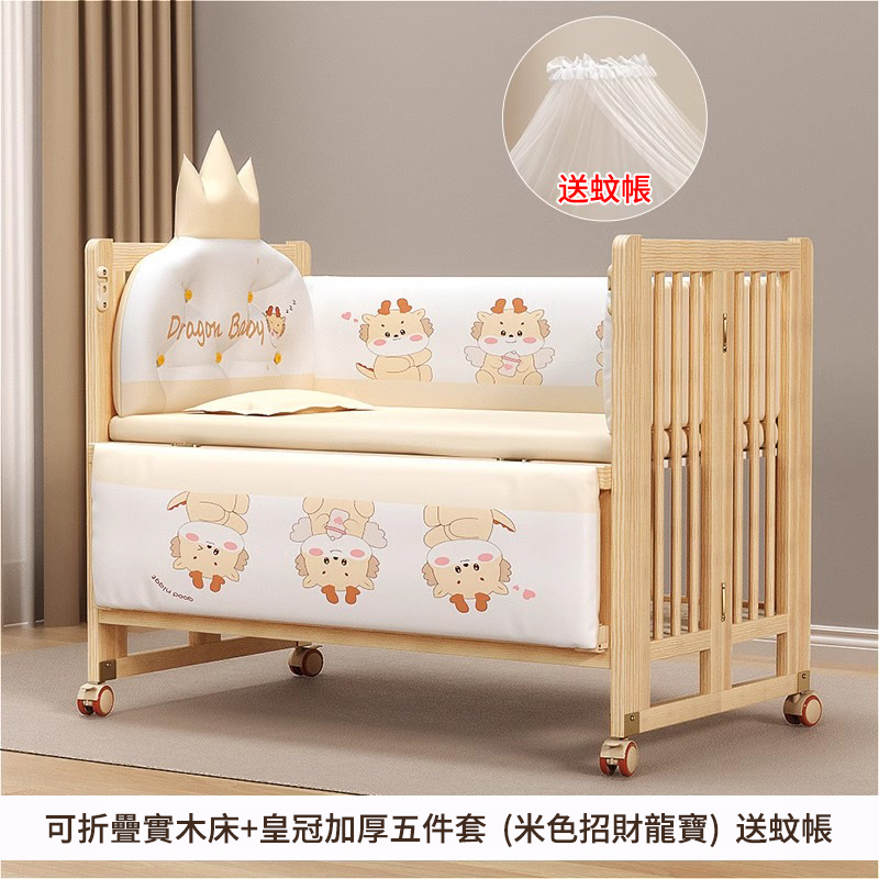 4分鐘前陪伴寶寶成長,永不閒置【嬰兒床-->遊戲床-->書桌】日本超火の可折疊嬰兒床,實木無漆更安心,可拼接大床+滑輪移動,多功能設計陪寶寶成長! - 【103*61*85cm】折疊小床+五件套+棕墊+蚊帳