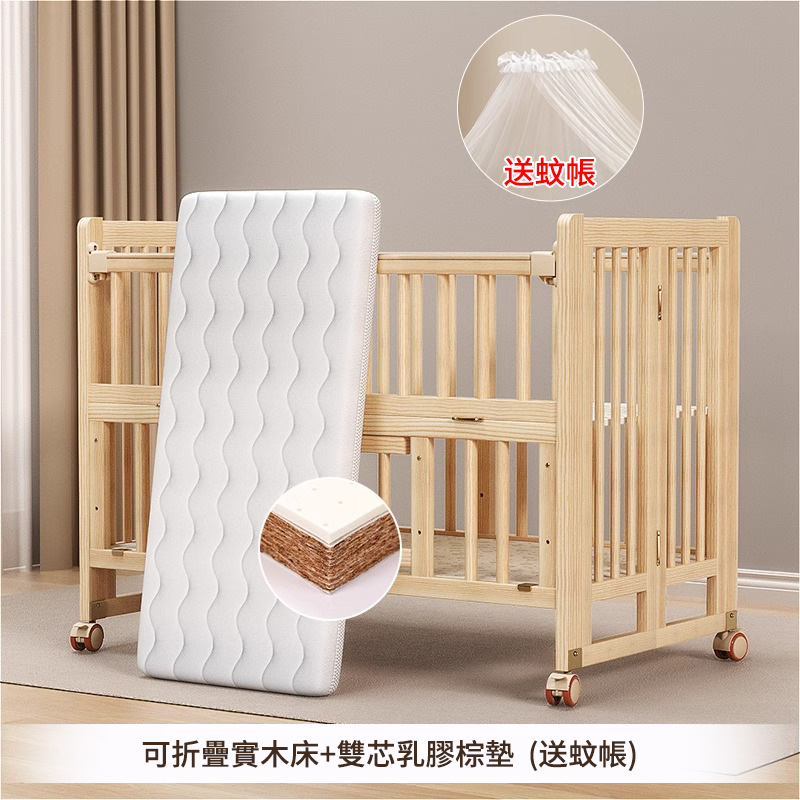 11分鐘前陪伴寶寶成長,永不閒置【嬰兒床-->遊戲床-->書桌】日本超火の可折疊嬰兒床,實木無漆更安心,可拼接大床+滑輪移動,多功能設計陪寶寶成長! - 【103*61*85cm】折疊小床+五件套+棕墊+蚊帳