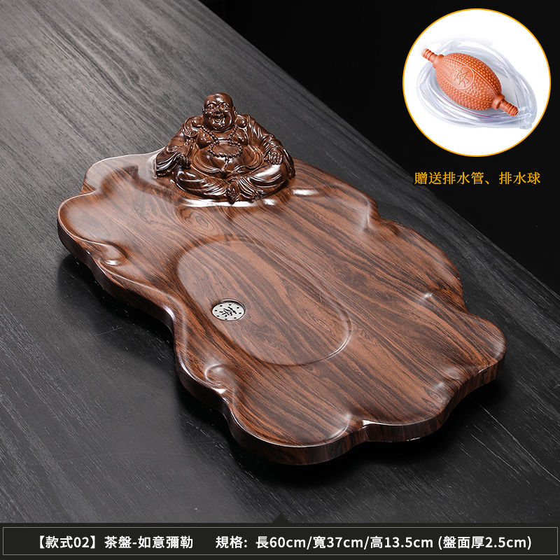20分鐘前【天然實木】黑檀木雕刻功夫茶盤組|中式茶具套裝|實木泡茶盤 擺設收藏兩用 - 如意彌勒60*37cm【送排水管】