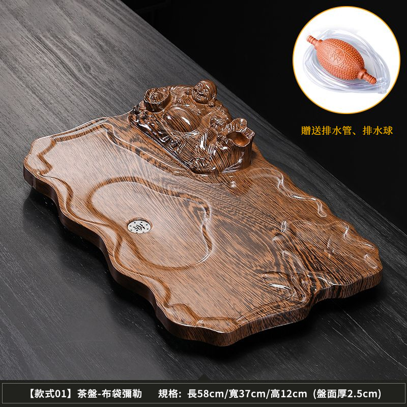 5分鐘前【天然實木】黑檀木雕刻功夫茶盤組|中式茶具套裝|實木泡茶盤 擺設收藏兩用 - 如意彌勒60*37cm【送排水管】